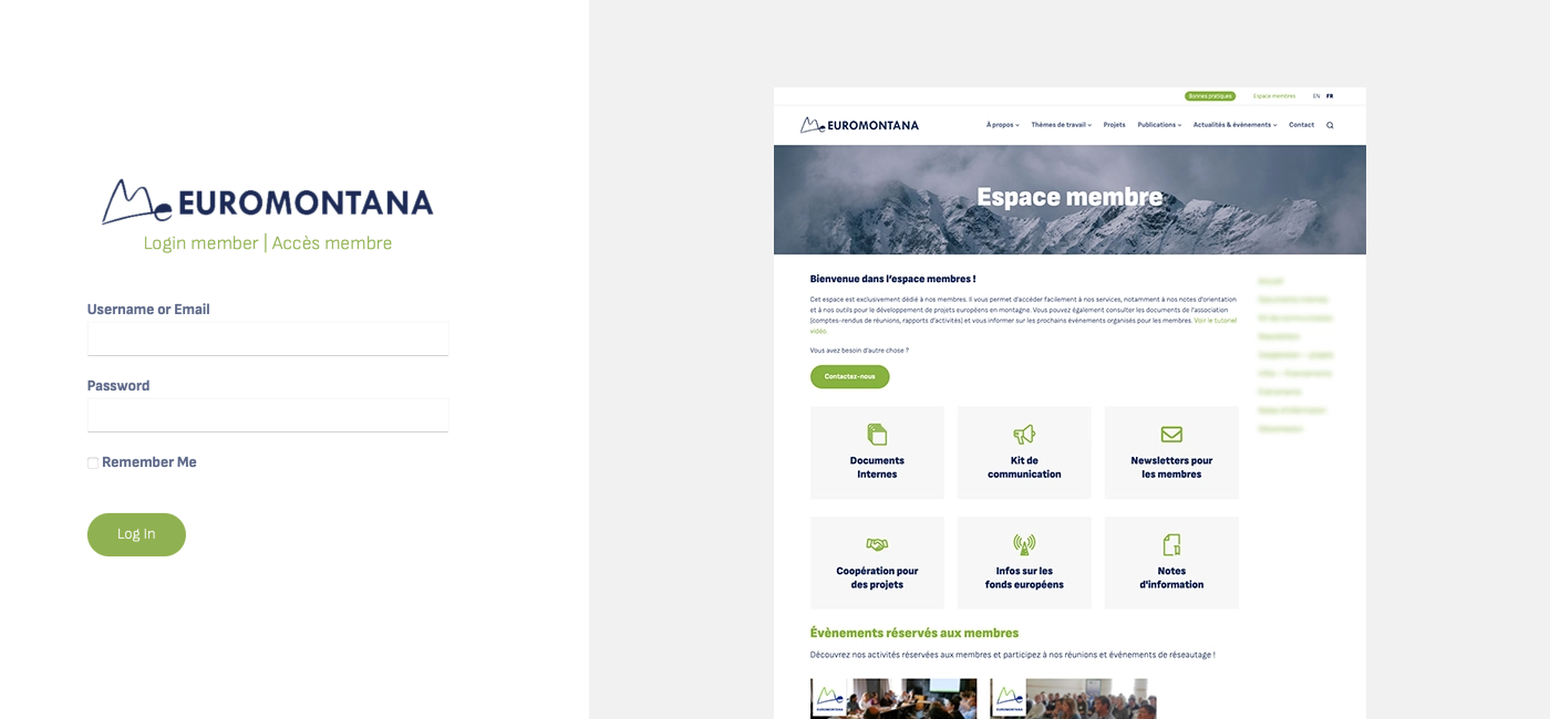 Protégé par mot de passe individuel, cet extranet permet aux membres de l’association d’accéder à des actualités, des évènements, des documents ressources et des publications réservées publiés par l’équipe d’Euromontana.